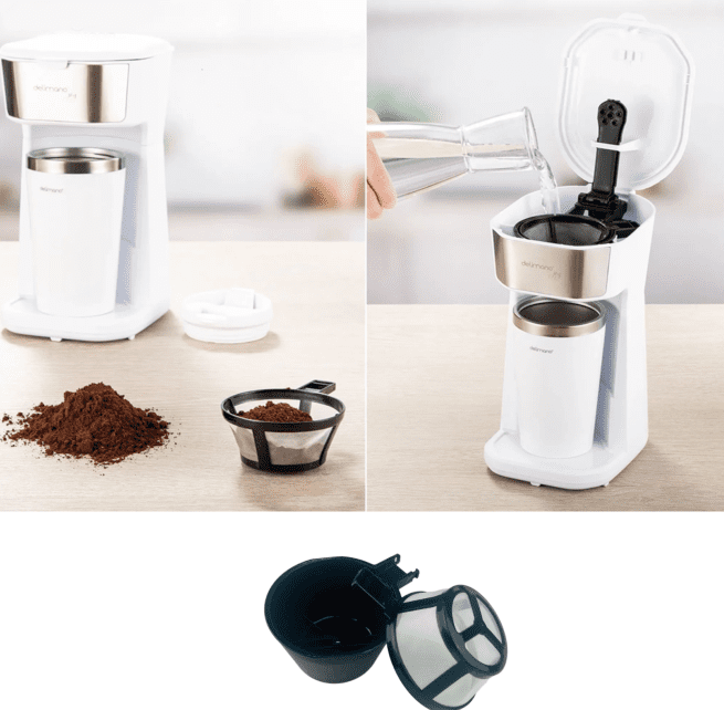 • استمتع بالقهوة مباشرة بالكوب الحراري المرفق.